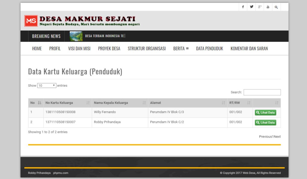 Berikut tampilan dari PODES atau Web Portal Desa ini: